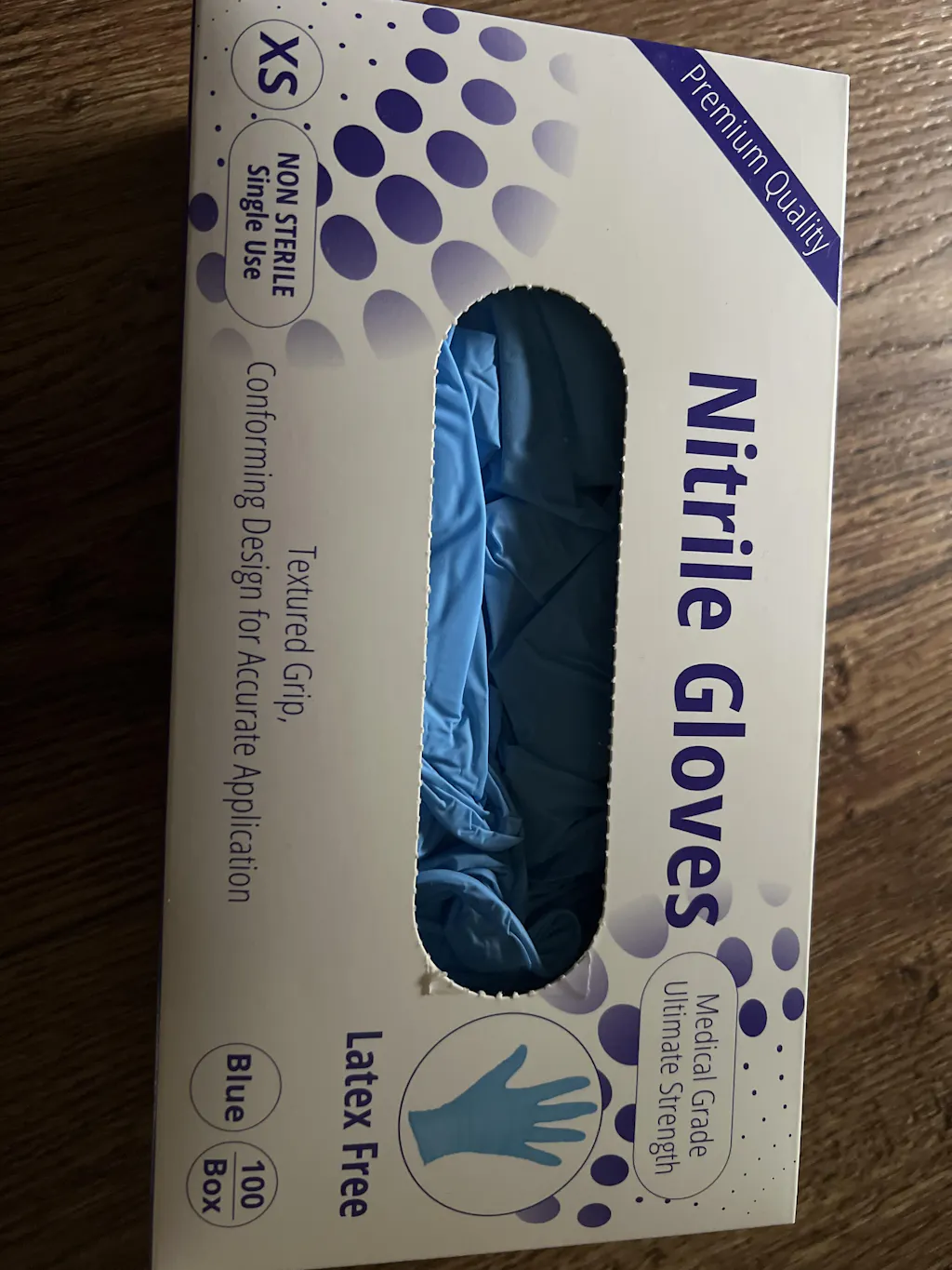 Nitrile glove: 100/Bx. Non-Sterile, Powder-Free.