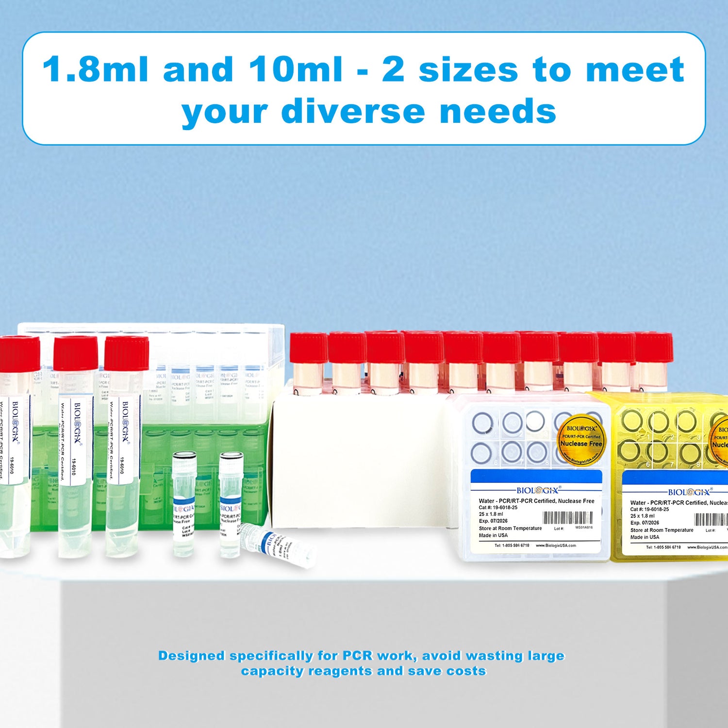 Ultra Pure Water, Molecular Biology Grade, DNase, RNAse, Protease, Endotoxins (Pyrogen) Free, PCR/RT-PCR Certified, Nuclease-Free Water, 25 x 1.8 ml/Pack, 30 Pack/Case